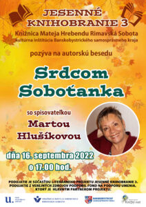 Knižnica Mateja Hrebendu Vás srdečne pozýva na stretnutie s regionálnou spisovateľkou Martou Hlušíkovou. Beseda pod názvom Srdcom Soboťanka sa uskutoční dňa 16. septembra 2022 o 17:00 hod. v komunitnej miestnosti knižnice. Literárny večer bude venovaný[...]