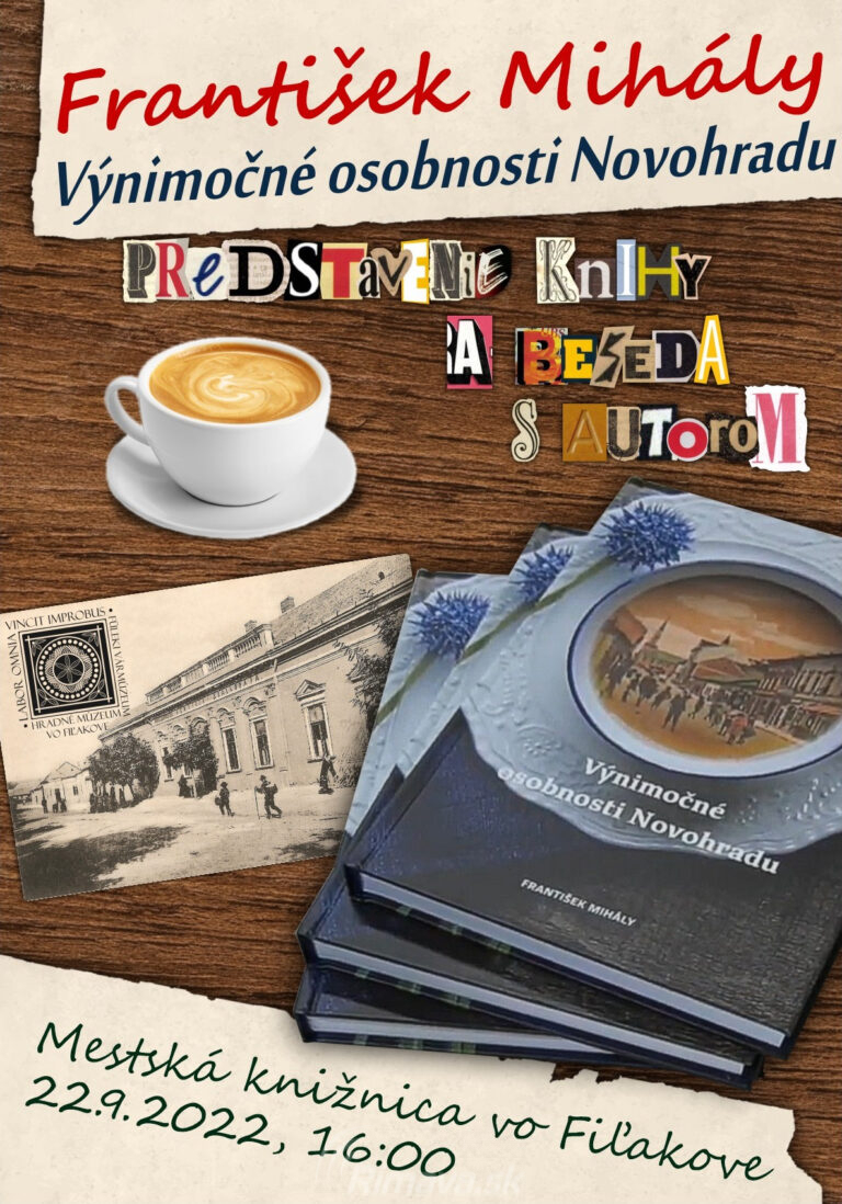 Hradné múzeum vo Fiľakove pozýva milovníkov literatúry na predstavenie knihy Františka Mihálya s názvom Výnimočné osobnosti Novohradu. Beseda v slovenskom jazyku sa uskutoční 22. 9. 2022, o 16:00 hod. v Mestskej knižnici. Všetkých záujemcov srdečne[...]