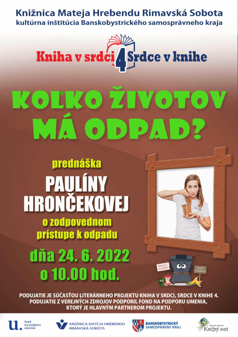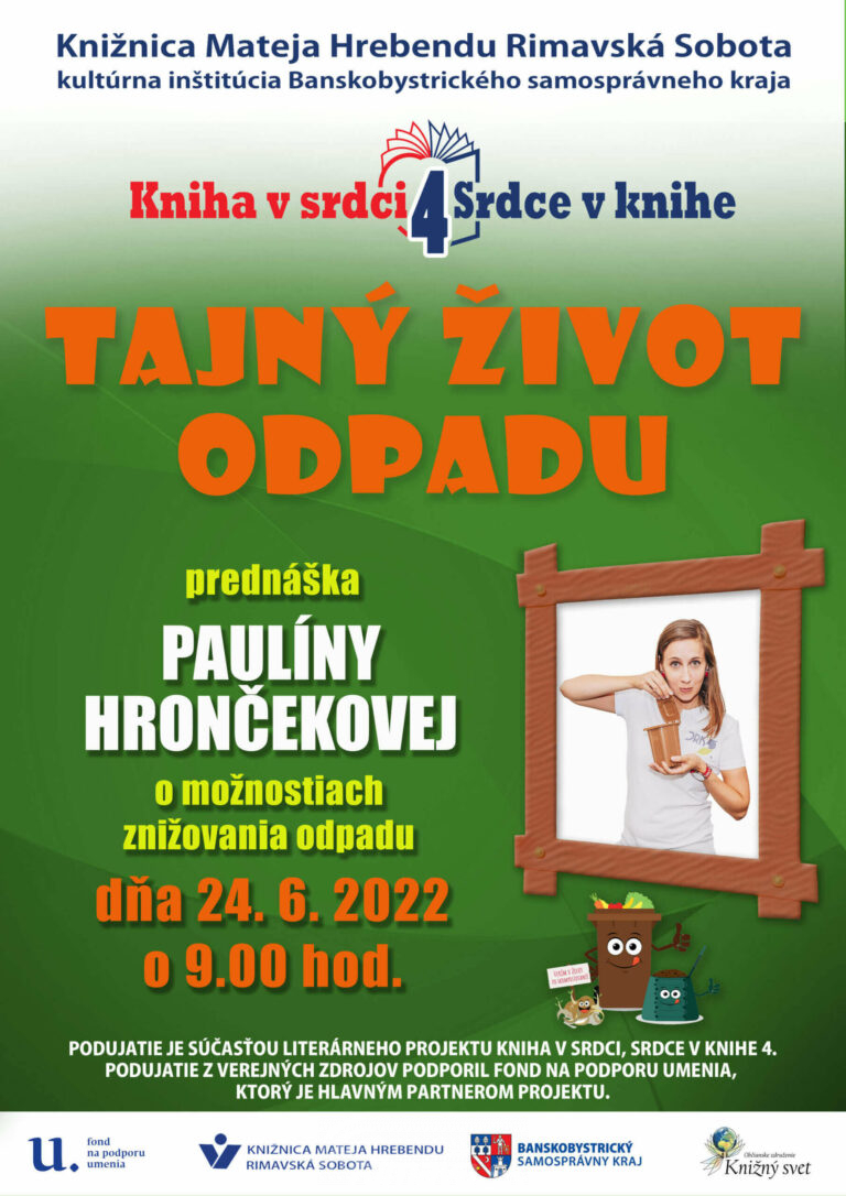 Prednáška Paulíny Hrončekovej na tému: odpadové hospodárstvo a možnosti znižovania odpadu. Žiaci 1. stupňa základných škôl sa dozvedia prečo je dôležité a ako triediť odpad. Podujatie sa uskutoční v rámci projektu Kniha v srdci, srdce[...]