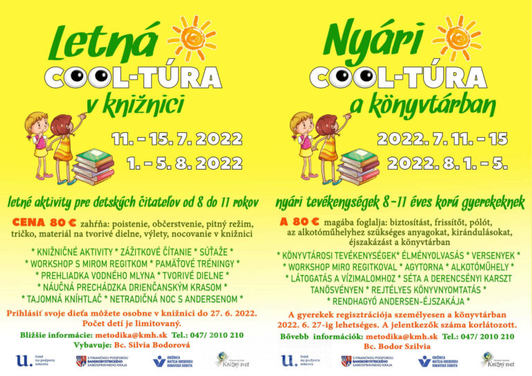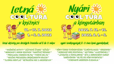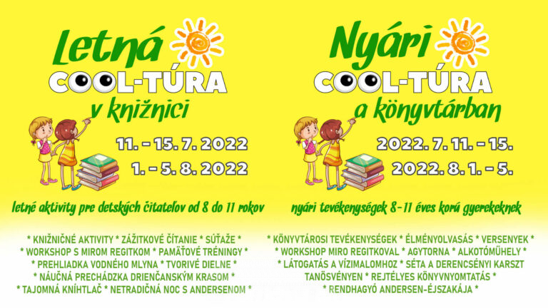 Milé deti, milí rodičia! Aj tento rok Vás srdečne pozývame na letné aktivity pre detských čitateľov od 8 do 11 rokov, ktoré sa budú konať v dvoch termínoch: 11. - 15. 7. 2022 a 1.[...]