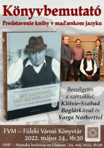 Hradné múzeum vo Fiľakove pozýva všetkých milovníkov literatúry na predstavenie knihy s názvom „Hét esztendő, hét szempillantás" (v preklade „Sedem rokov, sedem okamihov"), ktorej autormi sú Boglárka Klitsie-Szabad a fiľakovský folklorista Norbert Varga. Beseda v[...]