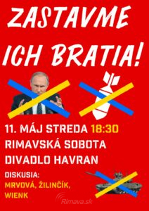 Nezávislá občianska iniciatíva Zastavme ich bratia! prichádza s ďalšou zo série diskusií, tentokrát sa uvidíme v Rimavskej Sobote. Diskutovať budú: Iva Mrvová, vojnová reportérka Pavol Žilinčík, právnik Moderuje: Zuzana Wienk, Bystriny Na vlastné oči... diskusia[...]