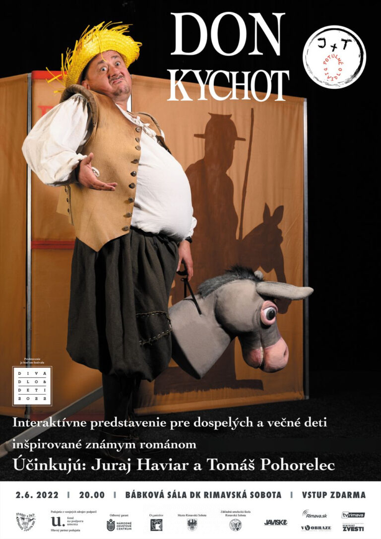 Všetkých milovníkov divadla pozývame vo štvrtok, 2. 6. o 20.00 hod. do bábkovej sály DK (vchod cez Dekáč) na interaktívne predstavenie pre dospelých DON KYCHOT inšpirované známym románom v podaní Potulného dividla J+T z Medzibrodu.[...]