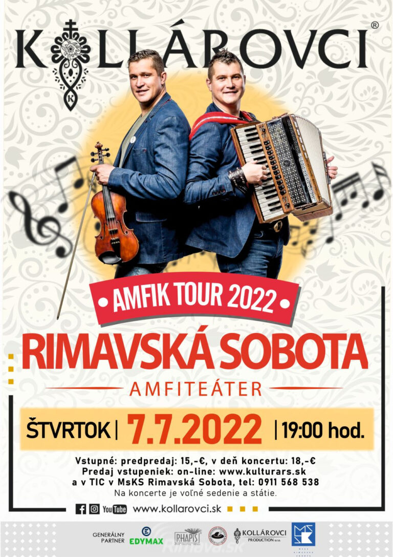 Priatelia, srdečne Vás pozývame na jedinečný koncert bratov Kollárovcov, ktorý sa v rámci svojho koncertného turné na Slovensku, predstavia vo štvrtok, 7. 7. 2022 o 19.00 hod. na amfiteátri v Rimavskej Sobote. Famózny koncert, plný[...]