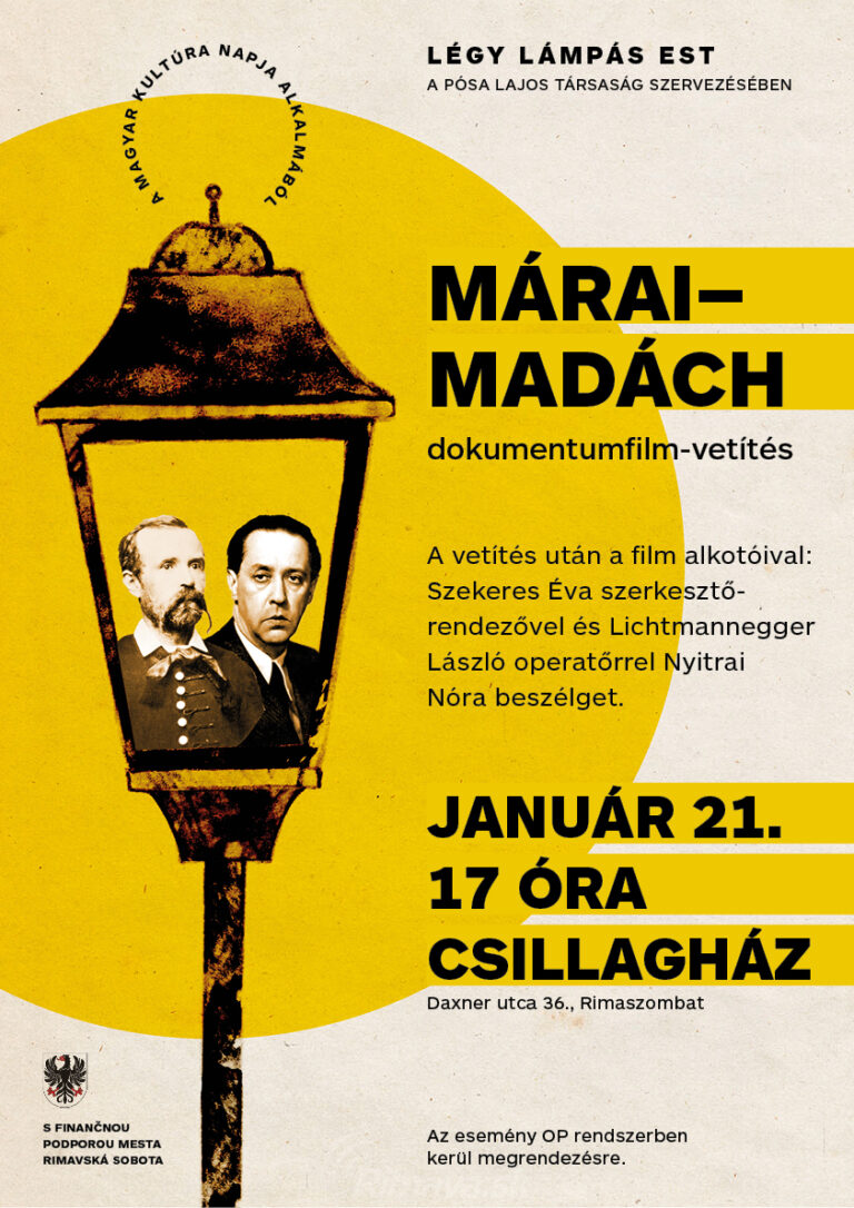 Légy Lámpás est A Pósa Lajos Társaság a Magyar kultúra napja alkalmából 2022. 1.21-én 17:00 órai kezdettel tisztelettel meghívja Önt a Márai–Madách (rokoni szálak) dokumentumfilm vetítésére. A film vetítése után az alkotókkal : Szekeres Éva[...]