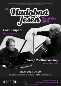 Na druhom koncerte 41. ročníka Hudobnej jesene odznejú v podaní špičkových interpretov Ivana Gajana / klavír a Jozefa Podhoranského / violončelo diela hudobných velikánov ako Čajkovskij, Rachmaninov, Rimskij-Korsakov a pod. Koncert bude v utorok 28.[...]