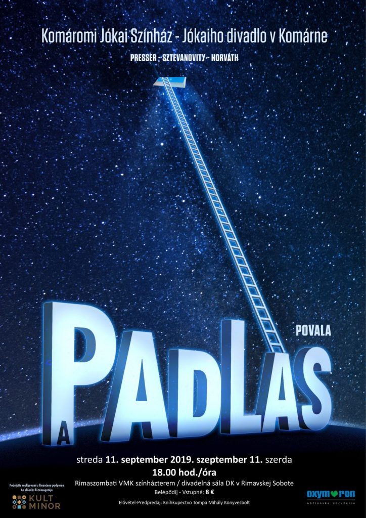 2019. szeptember 11-én, szerdán 18.00 órai kezdettel Presser Gábor – Sztevanovity Dusán – Horváth Péter: A padlás című nagy sikerű musicaljét láthatjuk a Rimaszombati Kultúrházban. Belépő 8 euró. Jegyek a Tompa Mihály Könyvesboltban kaphatók.
