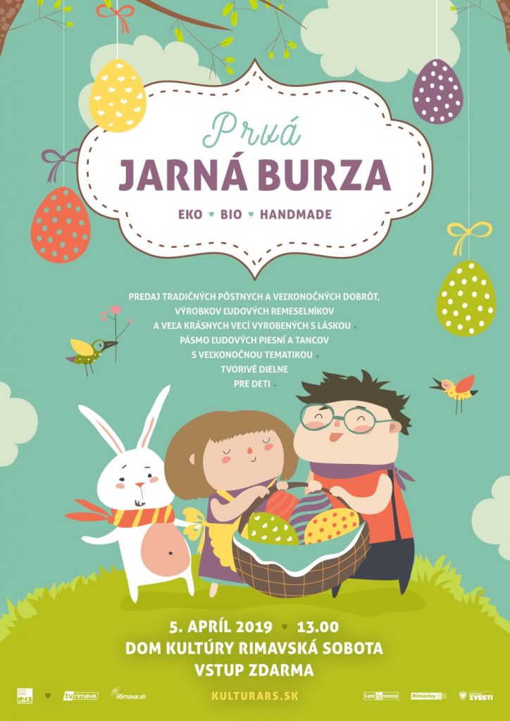 Oznamujeme všetkým milovníkom krásnych originálnych ručne vyrobených vecičiek, s láskou upečených a uvarených tradičných pôstnych a veľkonočných dobrôt, výrobkov remeselníkov a hlavne ľudového zvykoslovia, tancov a spevov, že sme sa rozhodli zorganizovať Prvú jarnú bio/eko/handmade burzu. Bude v piatok, 5. 4. 2019 od 13.00 hod. vo foyer Domu kultúry v Rimavskej Sobote (od fontány). Spolu oslávime príchod jari, zabaví nás pásmo ľudových piesní a tancov s veľkonočnou tematikou, pre deti budú pripravené tvorivé dielne. Vstup zdarma.