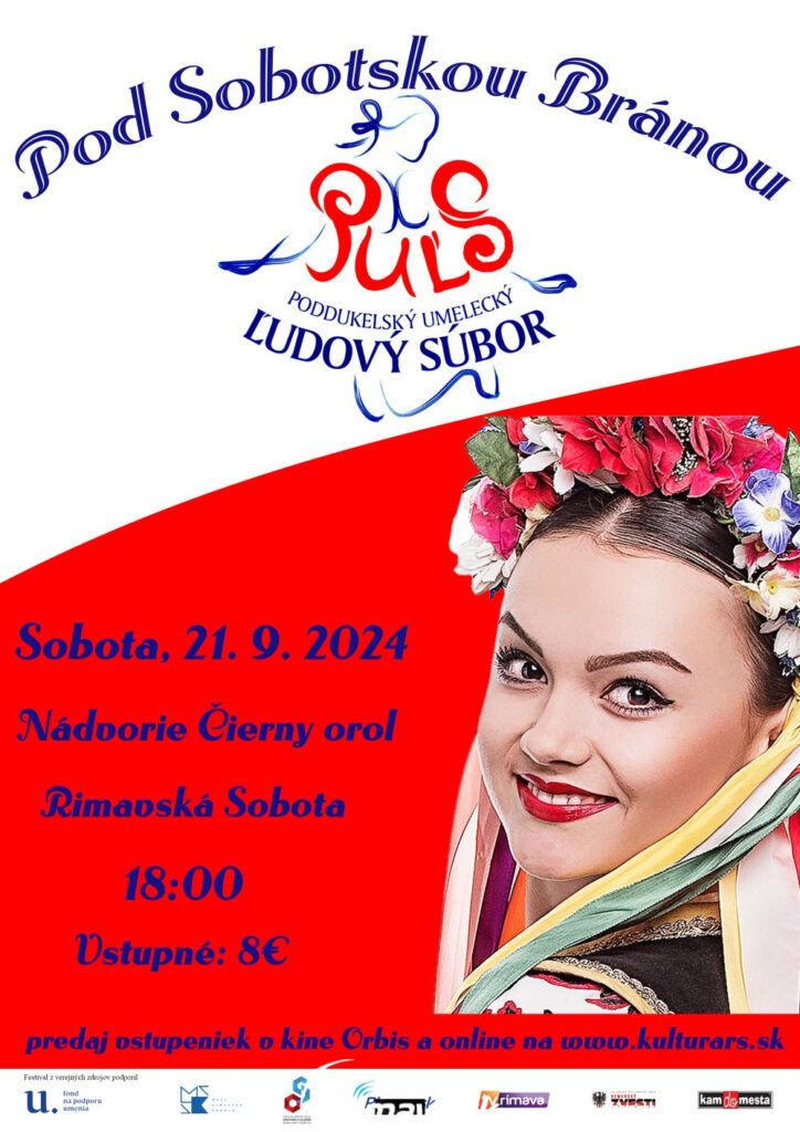 Všetkých milovníkov folklóru a ľudových tradícií pozývame v sobotu, 21. 9. o 18.00 hod. do Čierneho orla na pásmo profesionálneho umeleckého telesa PUĽS: NÁVRATY, ktoré je vytvorené z najhranejších a divácky najúspešnejších kompozícií významných slovenských a zahraničných tvorcov počas celého pôsobenia telesa. Ak sa o PUĽS-e chcete dozvedieť čo najviac, musíte navštíviť práve toto predstavenie. Vstupné: 8€, predaj vstupeniek v Kine Orbis, online na www.kulturars.sk a priamo na mieste.