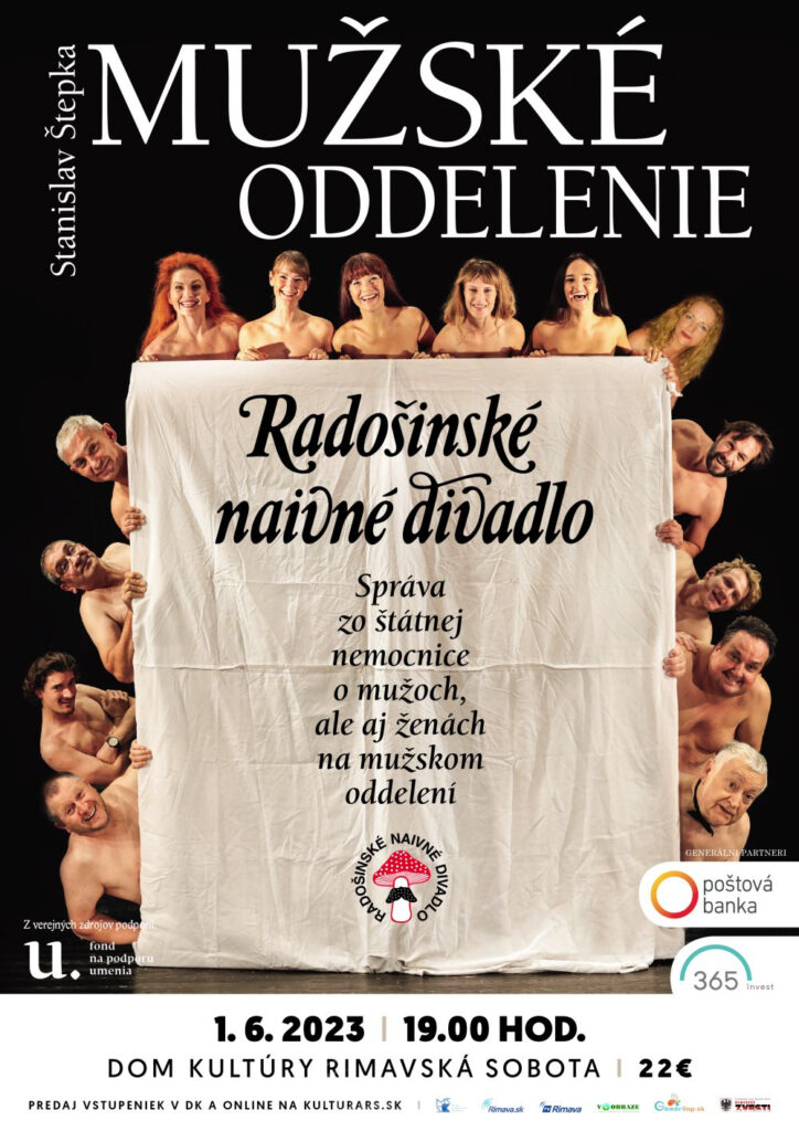 Správa z nemocnice o mužoch, ale aj ženách alebo Trpká komédia o tom, ako sa otvárajú telá a duše na mužskom oddelení. Súčasná trpká či clivá komédia Mužské oddelenie v podaní hercov Radošinského naivného divadla zavíta do nášho mesta vo štvrtok, 1. 6. o 19.00 hod.