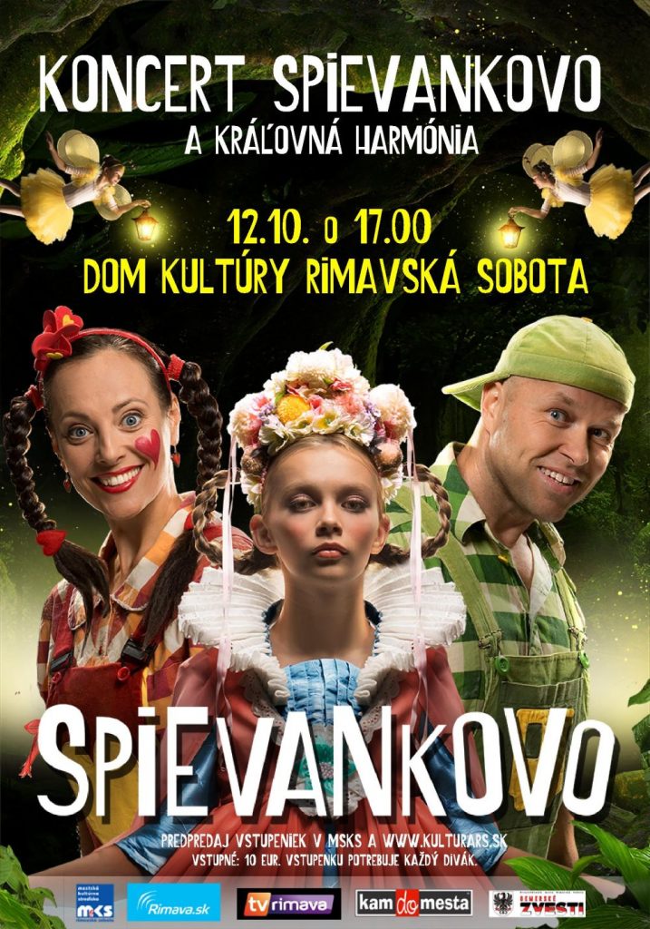 A je to tu opäť. Deťmi milovaný a jedinečný interaktívny koncert Spievanky a Zahrajka plný rozprávkových prekvapení v podobe prekrásnych pesničiek z filmu Spievankovo 6 a Kráľovná Harmónia. V sobotu, 12. 10. o 17.00 hod. zavítajú do Rimavskej Soboty. Tak neváhajte a príďte, zoznámite sa s Kráľovnou Harmóniou a postavičkami, ktoré nevyhnutne potrebujú Vašu pomoc pri záchrane Spievankova! Čaká Vás koncert plný hudby, tanca a zábavy. Tešíme sa na Vás! Vstupné: 10€. Predaj vstupeniek v u nás v MsKS a online z pohodlia domova na www.kulturars.sk. Zakúpenú vstupenku musí mať každý návštevník koncertu.