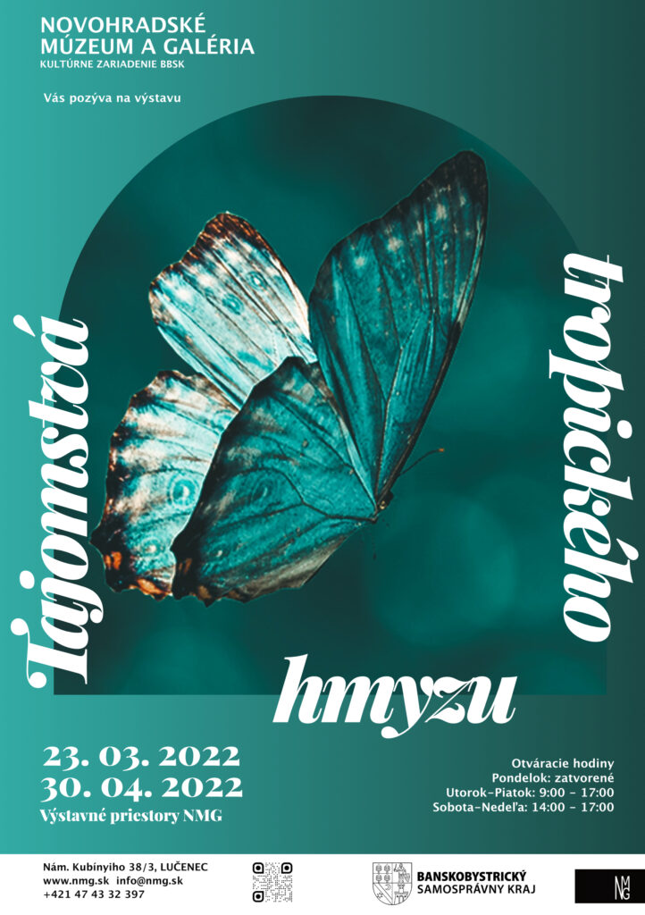 Novohradské múzeum a galéria, kultúrne zariadenie Banskobystrického kraja, Vás pozýva na výstavu, ktorá vás prenesie do tropických kútov mikrosveta hmyzu – „Tajomstvá tropického hmyzu“, ktorú pre verejnosť sprístupníme 23. 3. 2022 o 14:00.