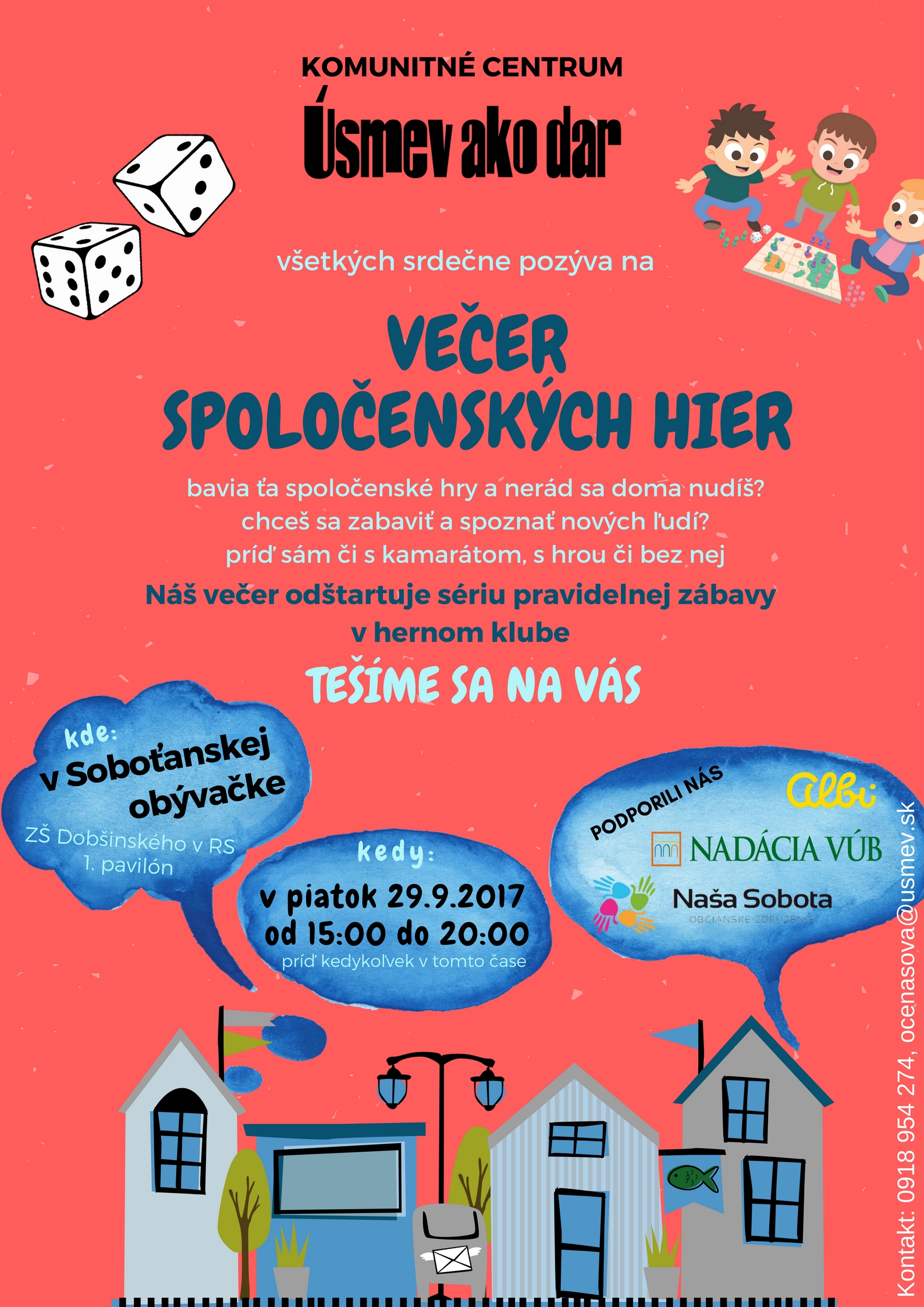 Ak sa v piatok nechceš doma sám nudiť, pozývame Ťa k nám do nášho "herného klubu". Bavia ťa hry strategické či zábavné, logické či hry na postreh? Všetko máme, alebo si svoju obľúbenú prines so sebou. A prines aj kamoša, nech je nás dosť. Nudiť sa určite nebudeme.