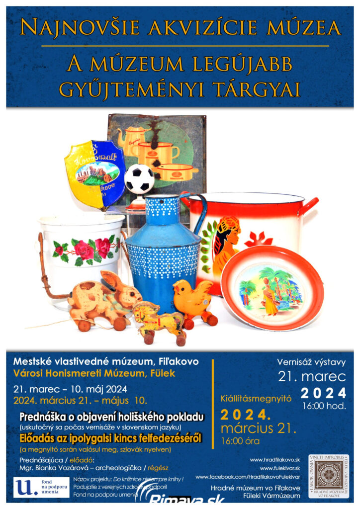 Hradné múzeum vo Fiľakove pozýva milovníkov histórie a všetkých záujemcov na vernisáž jubilejnej výstavy s názvom Najnovšie akvizície múzea. Mestské vlastivedné múzeum funguje v priestoroch miestnej reduty (Vigadó) od roku 1994. Takmer presne dvadsať rokov po jeho otvorení sa v roku 2014 sprístupnila nová expozícia s názvom „Od fiľakovskej palmy k svetoznámemu kohútovi". Keďže jednou z hlavných aktivít Hradného múzea je aj naďalej akvizičná činnosť, inštitúcia sa snaží sústavne dopĺňať svoj zbierkový fond. Novonadobudnuté artefakty prezentuje verejnosti a zároveň ich uchováva pre budúce generácie.