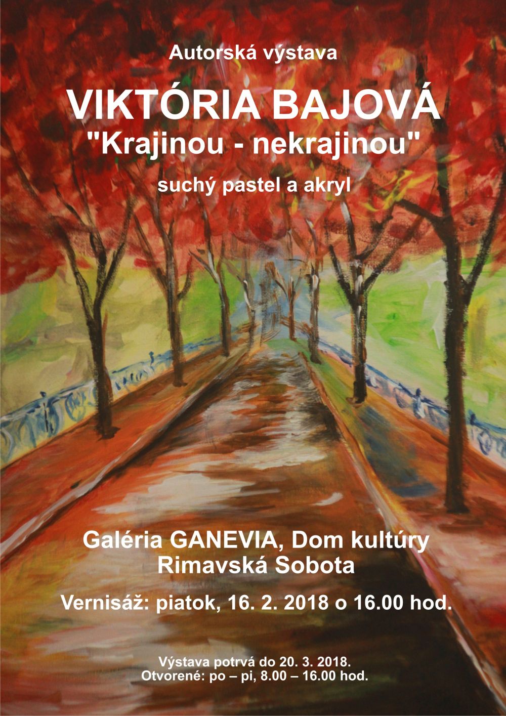 Viktória Bajová študuje na Súkromnej strednej umeleckej škole vo Zvolene, 3. ročník odboru Propagačné výtvarníctvo. V Rimavskej Sobote bude mať svoju druhú samostatnú výstavu, prvú mala minulý rok na Vodnom hrade v Štítniku.