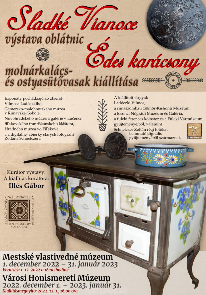 Hradné múzeum vo Fiľakove pozýva všetkých záujemcov na vernisáž výstavy s názvom „Sladké Vianoce", ktorá sa v tradičnej predvianočnej atmosfére uskutoční 1. decembra 2022, o 16:00 hodine v galérii Mestského vlastivedného múzea.
