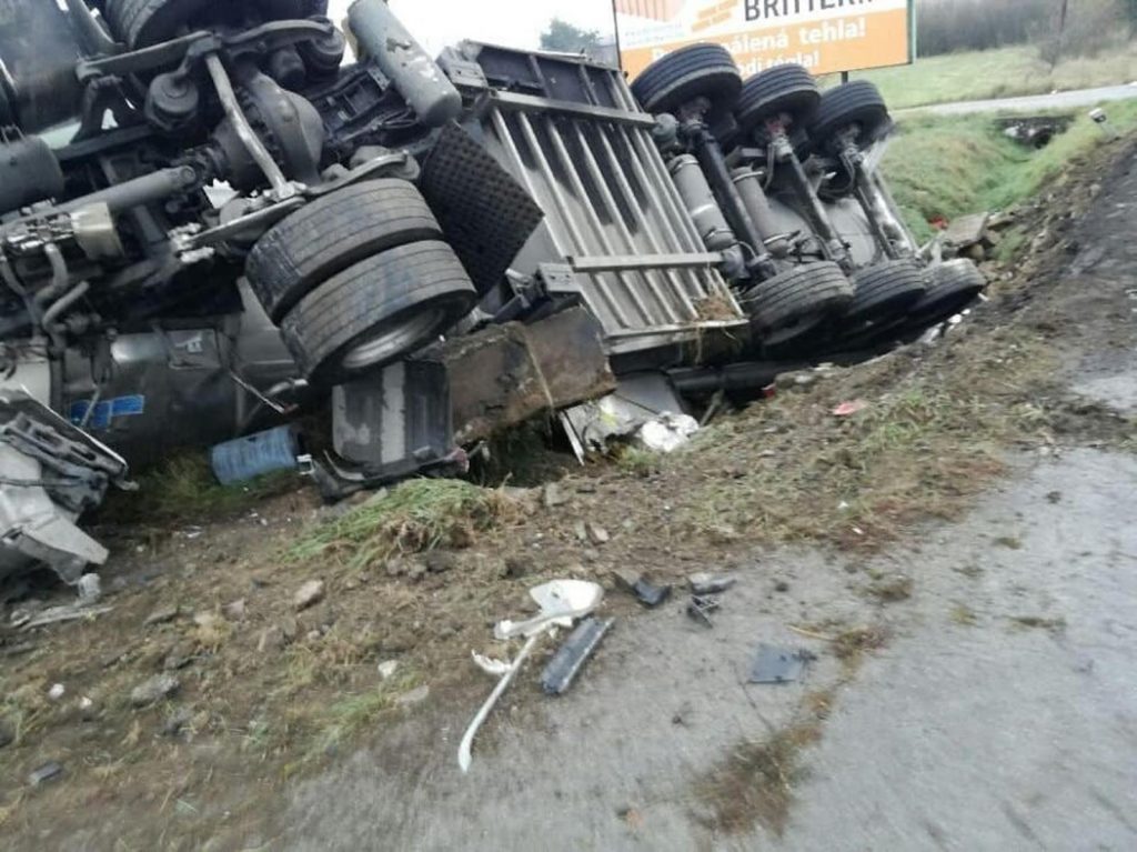 "Podľa doterajšieho objasňovania polície sa vodič nákladiaku pravdepodobne dostatočne nevenoval vedeniu vozidla a nesledoval situáciu v cestnej premávke a zišiel s nákladom mimo cestu, kde zostalo vozidlo prevrátené," informovala banskobystrická policajná hovorkyňa Mária Faltánová.