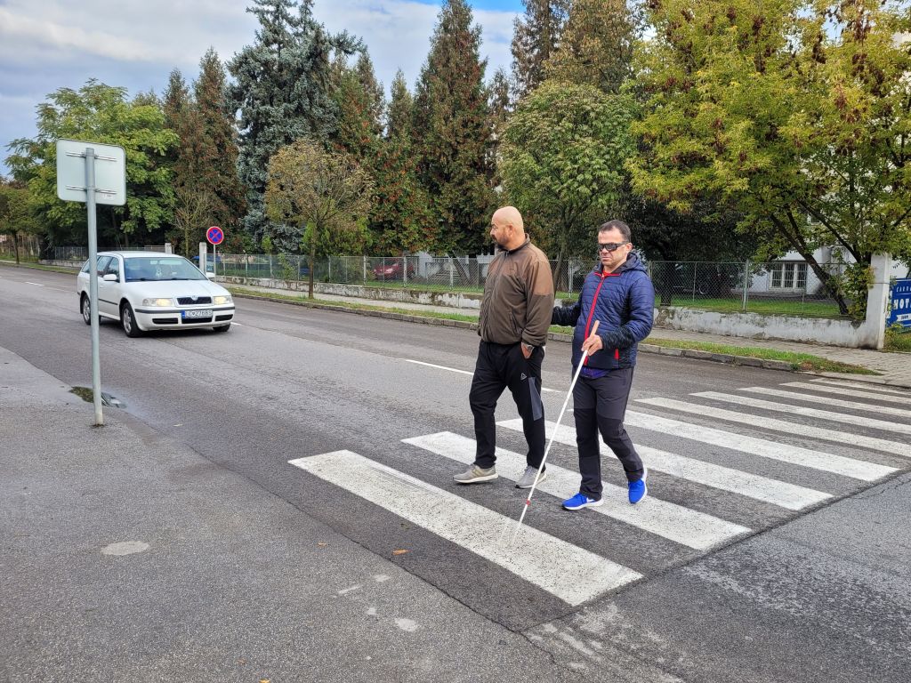 Ako ďalej vysvetlila, ak chce nevidiaci prejsť cez priechod pre chodcov, dáva signál tým, že bielu palicu zdvihne vodorovne pred seba do výšky pása a takto ju podrží niekoľko sekúnd.