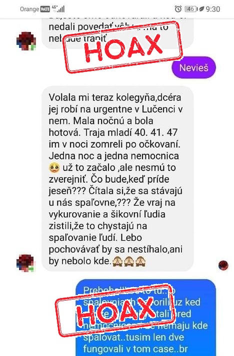 "Ide o hoax, ktorý sa nezakladá na pravde a od tvrdenia sa ako Všeobecná nemocnica Lučenec n.o. jednoznačne dištancujeme. Ku žiadnemu úmrtiu v súvislosti s očkovaním vo VšNsP Lučenec n.o. nedošlo," uviedla polícia stanovisko nemocnice.