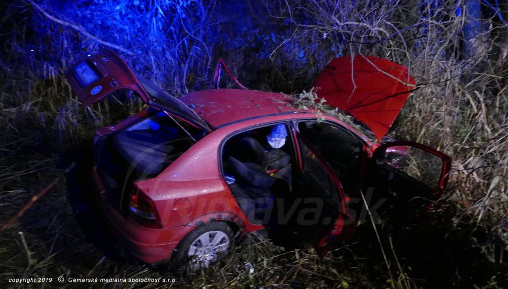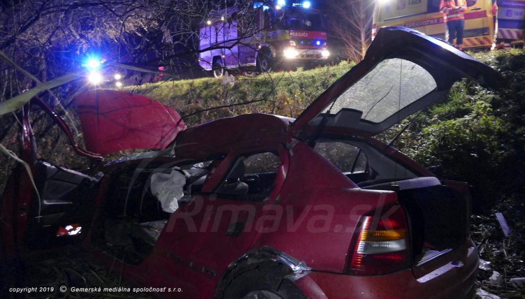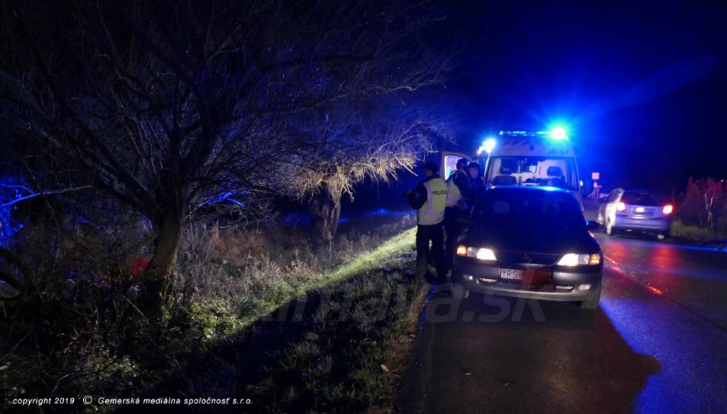 Na mokrej ceste medzi Širkovcami a Jesenským v okrese Rimavská Sobota dostal šmyk vodič Oplu Astra. V pravotočivej zákrute prešiel do protismeru a zišiel z cesty. Skončil v kríkoch, medzi stromami. Na mieste včera večer zasahovali hasiči, ktorí dvadsiatnikovi z Hostíc pomohli z nabúraného auta, použiť museli nosítka. Záchranári ho previezli do nemocnice. Podľa policajných informácií utrpel ľahké zranenia. Kvôli zraneniam mu na zistenie alkoholu bola odobrtá krv.