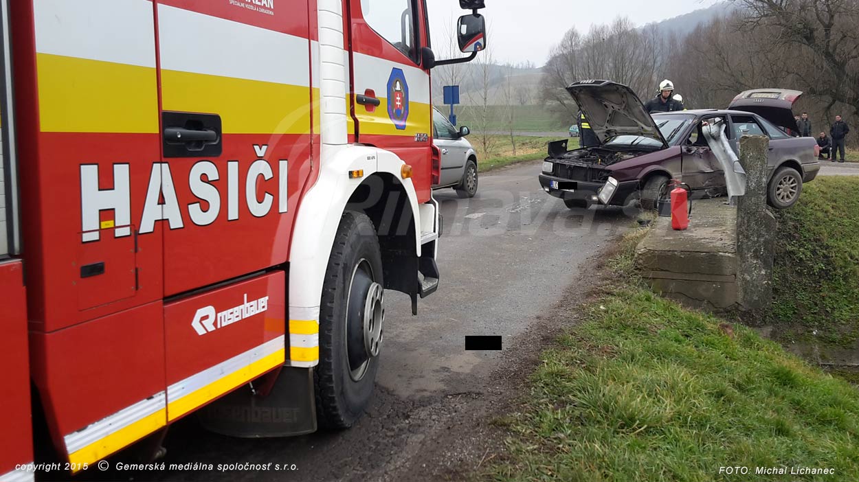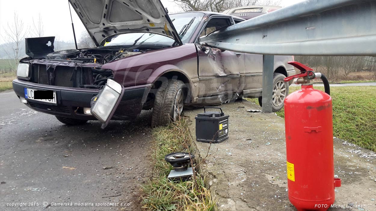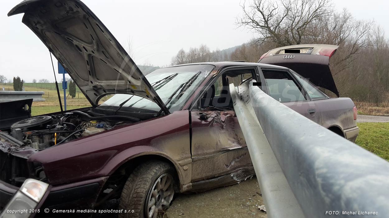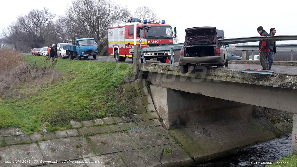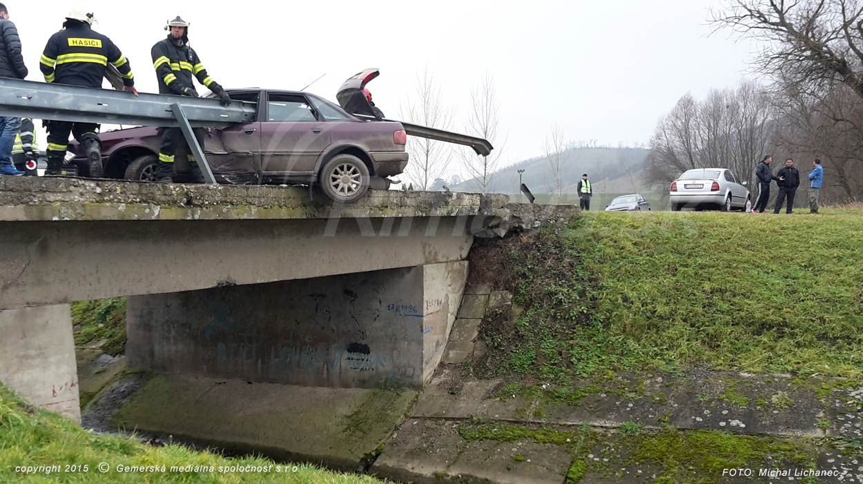 Medzi Širkovcami a Jesenským v okrese Rimavská Sobota došlo dopoludnia k hrozivo vyzerajúcej dopravnej nehode. Vodič Audi s lučeneckou poznávacou značkou smeroval od Širkoviec a v pravotočivej zákrute prešiel do protismeru, s vozidlom sa napichol na zvodidlá na moste. Tie zabránili, aby auto spadlo do rieky úplne. V aute podľa našich informácií sedeli ďalší traja pasažieri, nikto sa vážne nezranil.