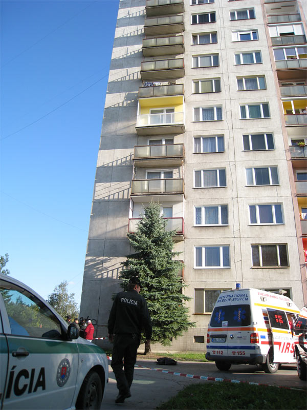 Po páde z jedenásteho poschodia výškového bytového domu dnes vyhasol život 26-ročného Soboťana.Stalo sa to o 14:30 hod. na Malohontskej ulici v Rimavskej Sobote, kedy mladíka našli okoloidúci ležať pred bytovkou na parkovisku.