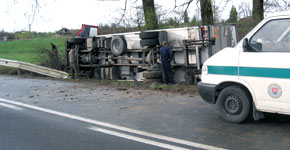 Ako pre Rimava.sk uviedla banskobystrická policajná hovorkyňa Petra Vašková, vodič z Liptovskej Tepličky (roč. nar. 1989) viedol vozidlo Mercedes Benz o 4 hod. v smere na Vrbovce. Podľa jej slov, šofér nevenoval dostatočne pozornosť vedeniu vozidla a situácii v cestnej premávke, následkom čoho v ľavotočivej zákrute vyšiel mimo cesty, kde sa vozidlo prevrátilo na bok. „Dopravná nehoda bola bez alkoholu, bez zranenia a škoda na vozidle je približne 5 tis. eur,“ povedala Vašková. Ako doplnila, škoda na prevážanom tovare je približne 3 tis. eur.  „Vodičovi bola udelená bloková pokuta vo výške 120 eur,“ dodala.