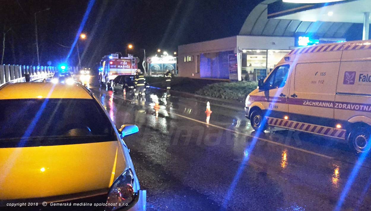 Na benzínke sa zrazili dve autá, mladý vodič si v daždi nevšimol prichádzajúce auto
