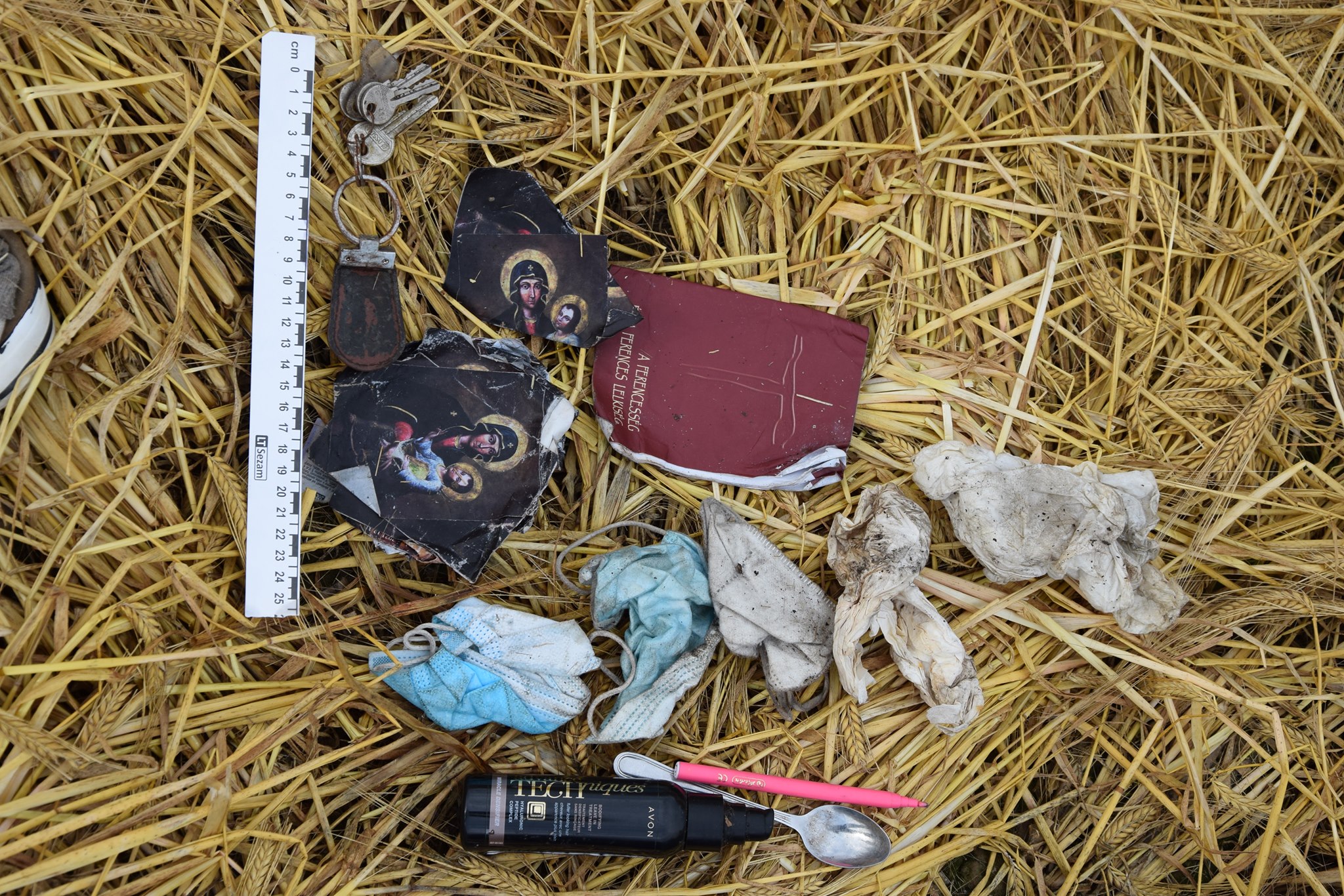 Telo zatiaľ neznámeho mŕtveho muža našli 3. júla na poli medzi uvedenými obcami. Polícia teraz zverejnila fotky jeho osobných vecí. Dúfajú, že verejnosť im pomôže muža stotožniť.