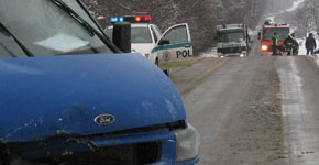 Včerajšiu dopravnú nehodu medzi obcami Rimavská Baňa a Rimavské Brezovo zavinil 44-ročný vodič nákladného motorového vozidla Ford Transit z Dunajskej Stredy. Rimava.sk informovala krajská policajná hovorkyňa Petra Vašková. Ako uviedla, muž viedol vozidlo smerom na Rimavské Brezovo. „V rovnom úseku cesty pred neprehľadným vrcholom klesania nerešpektoval na vozovke viditeľne vyznačenú pozdĺžnu súvislú čiaru a predchádzal pred sebou idúce motorové vozidlo Fiat Bravo, ktoré viedol vodič z Rimavskej Soboty,“ povedala hovorkyňa. Podľa jej slov v tom čase prichádzalo v protismere vozidlo Volkswagen Golf, ktorého vodičom bol muž z Podbrezovej. Ford Transit sa čelne zrazil s vozidlom Volkswagen Golf, Fiat Bravo skončilo vedľa cesty.