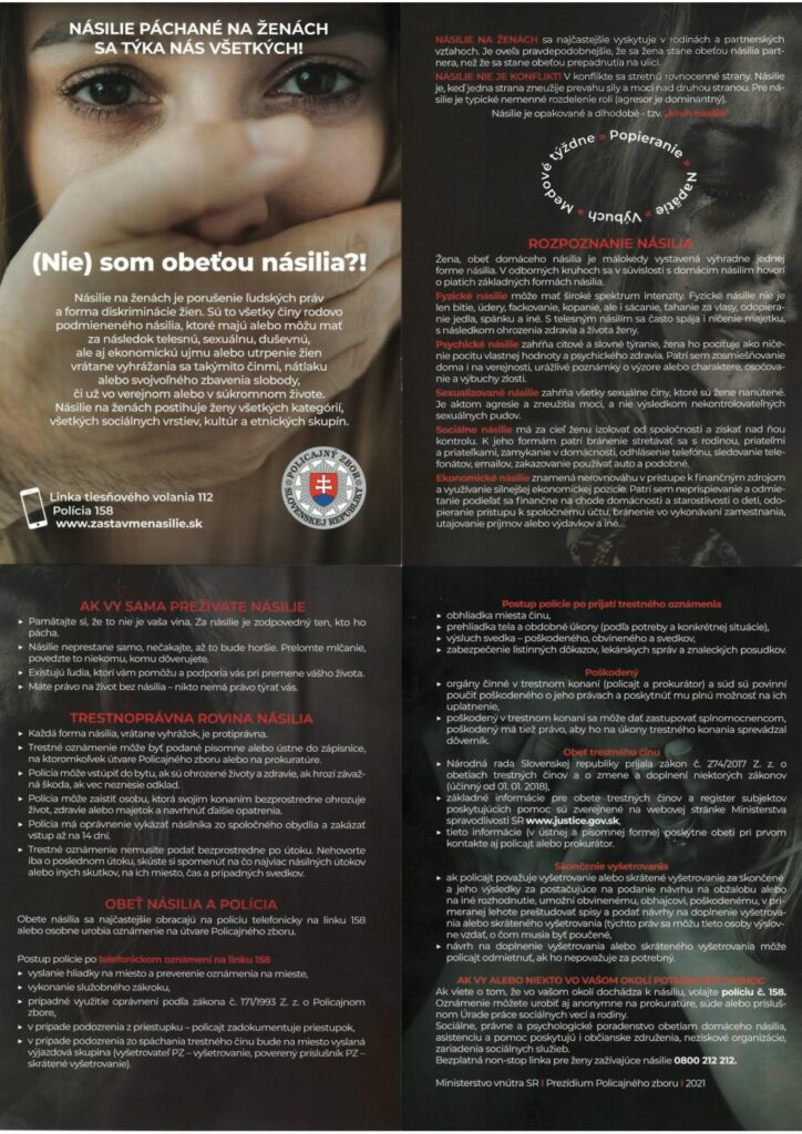 Blíži sa Medzinárodný deň eliminácie násilia na ženách, ktorý pripadá na 25. november. Pri tejto príležitosti Policajný zbor počas predposledného novembrového týždňa informuje verejnosť na celom Slovensku o problematike násilia páchaného na ženách.