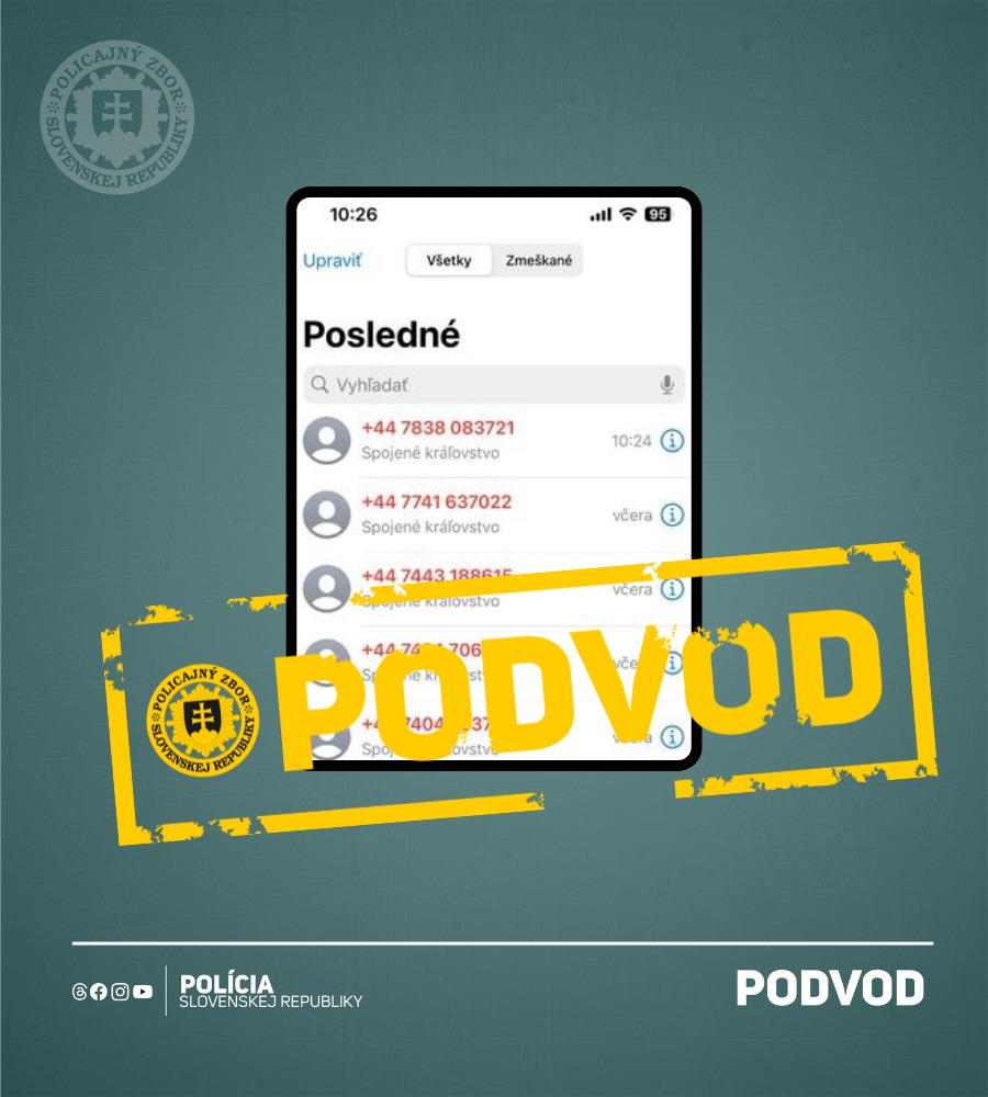 Slovensko čelí novej vlne telefonických podvodov, ktoré prichádzajú prevažne z čísel s predvoľbou Spojeného kráľovstva (+44). Podľa aktuálneho varovania Prezídia Policajného zboru SR ide o premyslenú kampaň zahraničných podvodníkov, ktorí sa snažia získať prístup k osobným a bankovým údajom občanov.