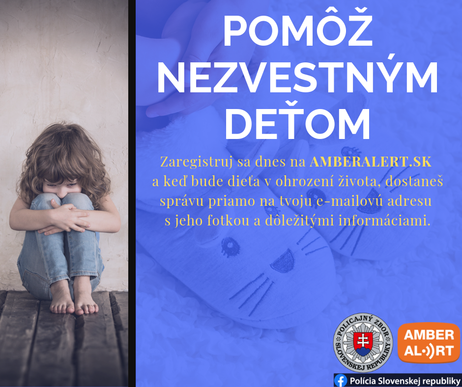 Na celom svete si stratené a nezvestné deti pripomíname 25. mája pri príležitosti Medzinárodného dňa nezvestných detí. V tejto súvislosti Policajný zbor informuje širokú verejnosť o postupe pri nahlasovaní nezvestnosti dieťaťa a o možnosti, ako môže byť verejnosť nápomocná prostredníctvom pohotovostného systému AMBER Alert Slovensko – „dieťa v ohrození života“. Rimava.sk o tom informovala Denisa Baloghová, hovorkyňa Prezídia Policajného zboru.