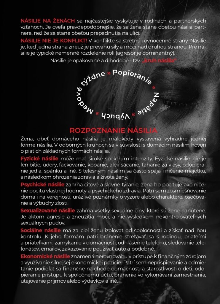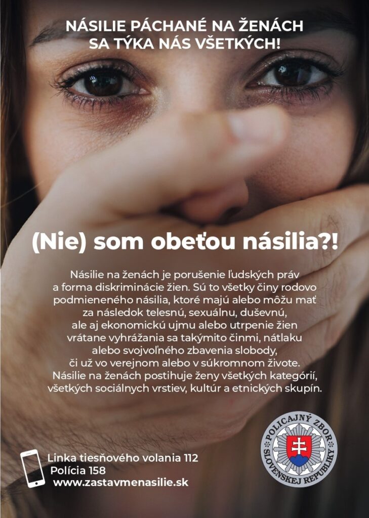 Pri príležitosti Medzinárodného dňa eliminácie násilia na ženách, ktorým je 25. november, polícia každoročne informuje verejnosť o tejto problematike.