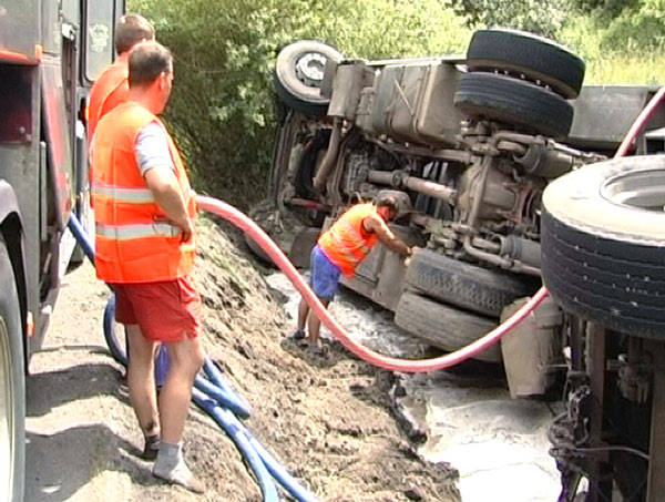 Medzi Rimavskou Pílou a Hačavou sa včera, 13. júna, prevrátil kamión s mliekom. Ako Rimava.sk informovala krajská policajná hovorkyňa Petra Vašková, k dopravnej nehode nákladného motorového vozidla došlo v poludňajších hodinách. Kamión šoféroval 35-ročný muž z obce Licince v okrese Revúca. „Vodič viedol vozidlo v smere od Rimavskej Píly na Hnúšťu, kde v rovnom úseku cesty na suchej zjazdnej vozovke sa plne nevenoval vedeniu vozidla a situácii v cestnej premávke a vyšiel s vozidlom k pravej krajnici. Následne aj napriek tomu, že sa snažil vedenie vozidla vyrovnať, vozidlo vošlo do pravej priekopy aj s návesom, kde sa prevrátilo na pravý bok,“ spresnila Vašková.