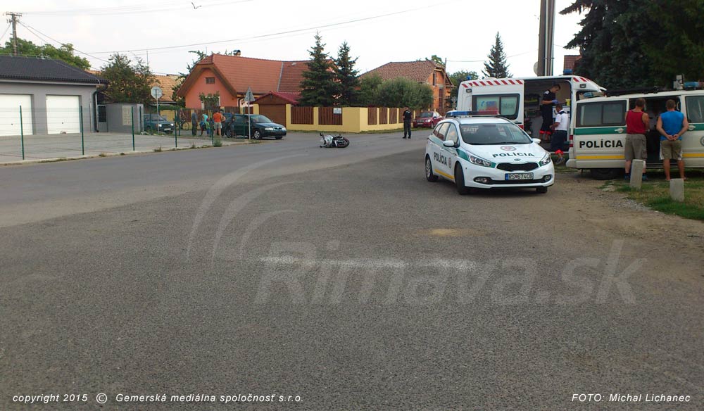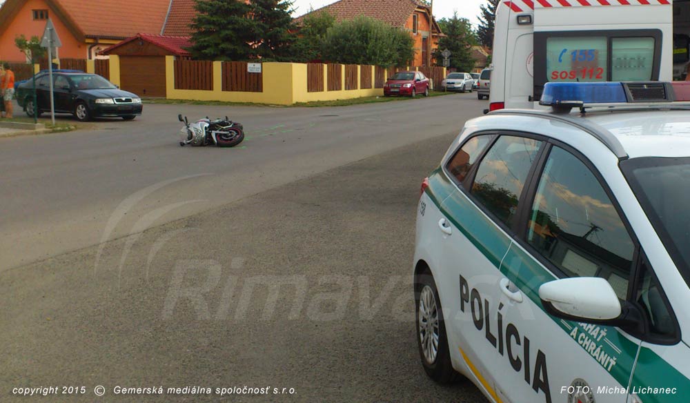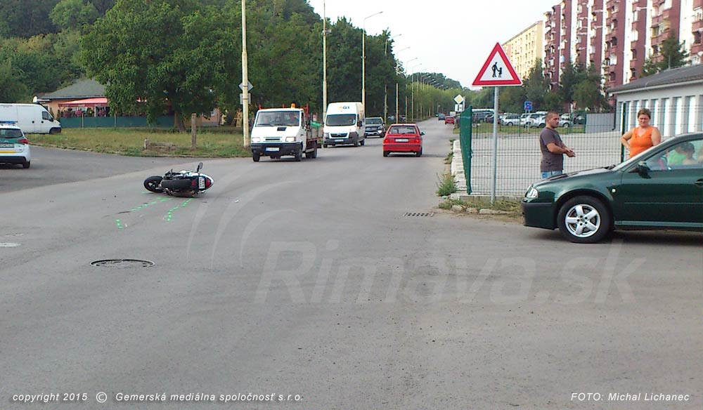 Pri Sídlisku Západ v Rimavskej Sobote zrazili cez týždeň motorkára, na miesto boli privolaní okrem polície aj záchranári Rýchlej zdravotnej pomoci (RZP). Tí motorkára ošetrili na mieste, k vážnym zraneniam počas nehody nedošlo. Auto s motorkou sa zrazili vo štvrtok, 13. augusta popoludní, na križovatke Sedliackej a Okružnej ulice. Podľa našich informácií vodič prichádzajúci po Sedliackej ulici nedal prednosť motorkárovi na hlavnej ceste. Podľa banskobystrickej policajnej hovorkyne Márie Faltániovej celý prípad evidujú len ako škodovú udalosť, pri ktorej sa nikto nezranil. „Nezistili ani požitie alkoholu u vodičov,“ uviedla Faltániová a dodala, že nebola spôsobená ani vyššia škoda.