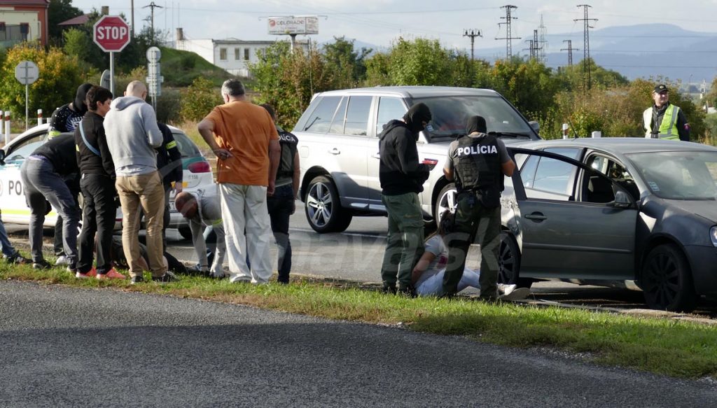 Podľa náhodných okoloidúcich auto značky VW Golf naháňali policajti už na Košickej ceste a padol aj výstrel. Na mieste je okrem niekoľkých policajtov aj psovod a vyšetrovateľ. Muž a žena skončili mimo auta s putami na rukách. S akou trestnou činnosťou táto razia súvisí, budeme informovať neskôr.