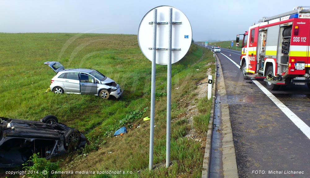 Pri vjazde na obchvat Oždian R2 sa ráno zrazili dve autá, jedného z vodičov museli vystrihávať rimavskosobotskí hasiči. Po ich príchode boli obidve vozidlá mimo cestu a jedno z nich ostalo prevrátené na strechu. Jeho vodič ostal zakliesnený v aute značky Volkswagen s poznávacou značkou Rimavská Sobota. Hasiči staršieho muža z auta vystrihli a privolaná rýchla zdravotná pomoc ho odviezla do nemocnice. Podľa našich informácií ku nehode došlo pred siedmou hodinou, počas hmly. Vozidlo Mercedes z okresu Pezinok prichádzalo po obchvate a smerovalo na Rimavskú Sobotu. Vodič Volkswagenu pritom prichádzal po starej ceste od Oždian a chcel vyjsť na hlavnú cestu. Bližšie okolnosti dopravnej nehody vyšetruje polícia.