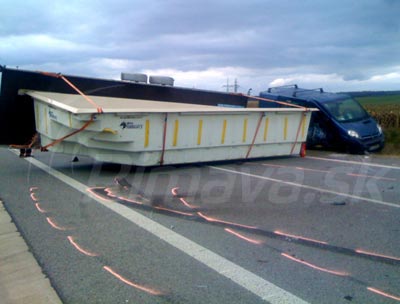 Na rýchlostnom obchvate R2 pri Tornali sa zrazillo nákladné auto, ktoré prevážalo bazén, s dodávkou. Ako pre Rimava.sk uviedla banskobystrická policajná hovorkyňa Mária Faltániová, k nehode došlo včera, krátko po poludní. Nákladné motorové vozidlo Opel Vivaro, ktoré viedol 36-ročný vodič, štátny občan Rumunska v smere na Rožňavu sa podľa policajnej hovorkyne stalo z doposiaľ nezistených príčin neovládateľné.