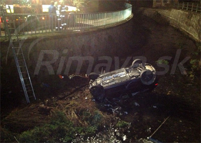 Ako Rimava.sk ďalej informovala banskobystrická policajná hovorkyňa Jana Vrbická, k dopravnej nehode došlo o 23.20 hod. na Ulici Obrancov mieru, vozidlo VW Golf v zákrute prerazilo zvodidlá, prednou časťou narazilo do koryta rieky Rimava a prevrátilo sa na strechu.
