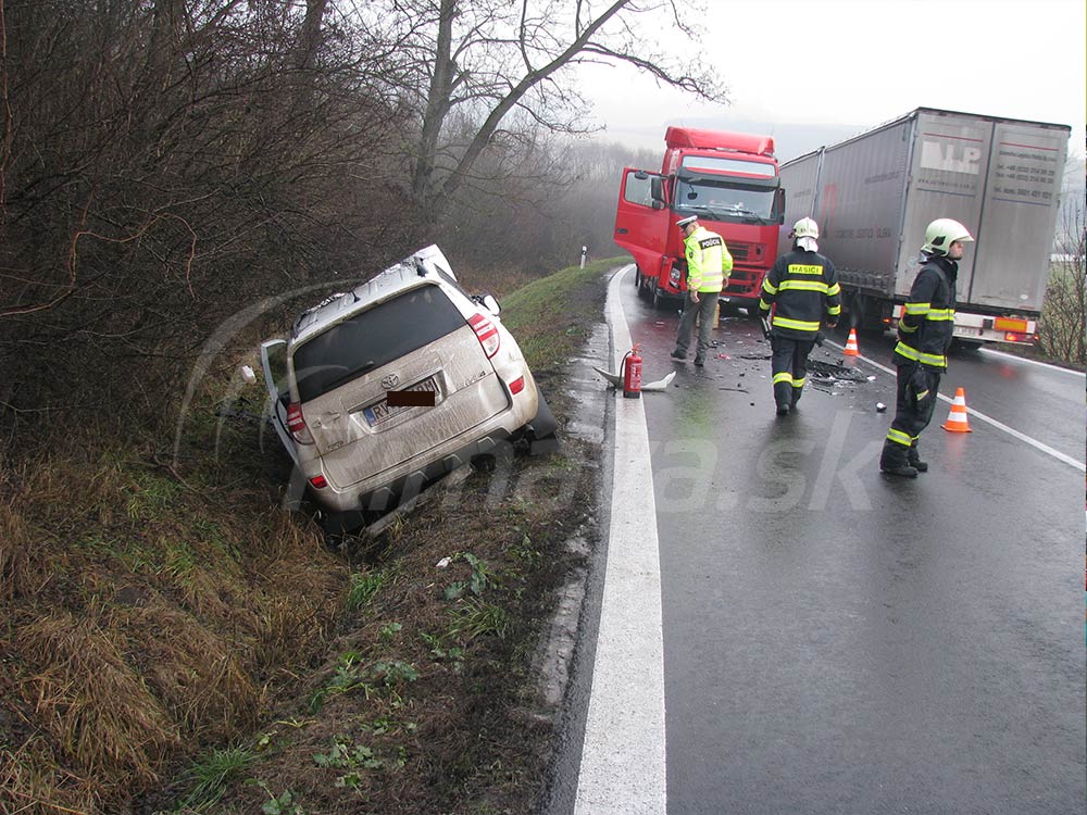 K vážnejšej kolízii došlo za Rimavskou Sobotou pri záhradkárskej oblasti Vinice. Vodič Peugeotu v zákrute prešiel do protismeru, kde narazil do jedného z oprotiidúcich kamiónov. Auto odhodilo do priekopy, vodič z neho vyšiel po vlastných. Podľa policajnej hovorkyne išlo o škodovú udalosť.