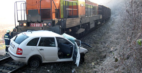 Po zrážke s nákladným vlakom dnes krátko pred desiatou hodinou zomrel 30-ročný vodič Škody Fábia Combi. Bol ním Jaroslav R. z Trebeľoviec z okresu Lučenec, ktorý prechádzal cez železničné priecestie v smere od Blhoviec na Hajnáčku.