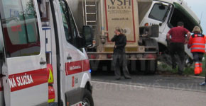 DOPLNENÉ: Za Baktou havaroval kamión s cisternou, vodič pravdepodobne dostal šmyk