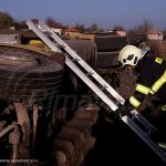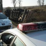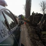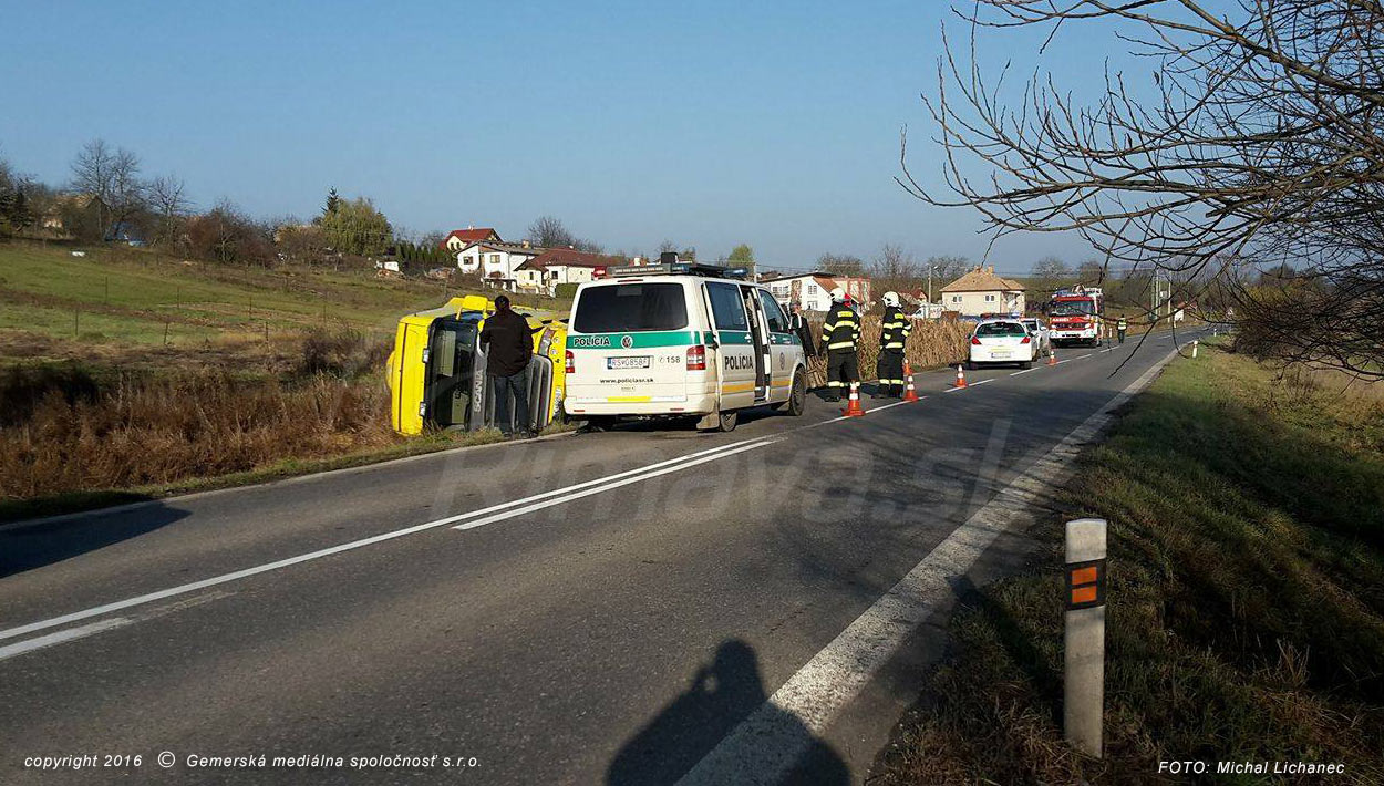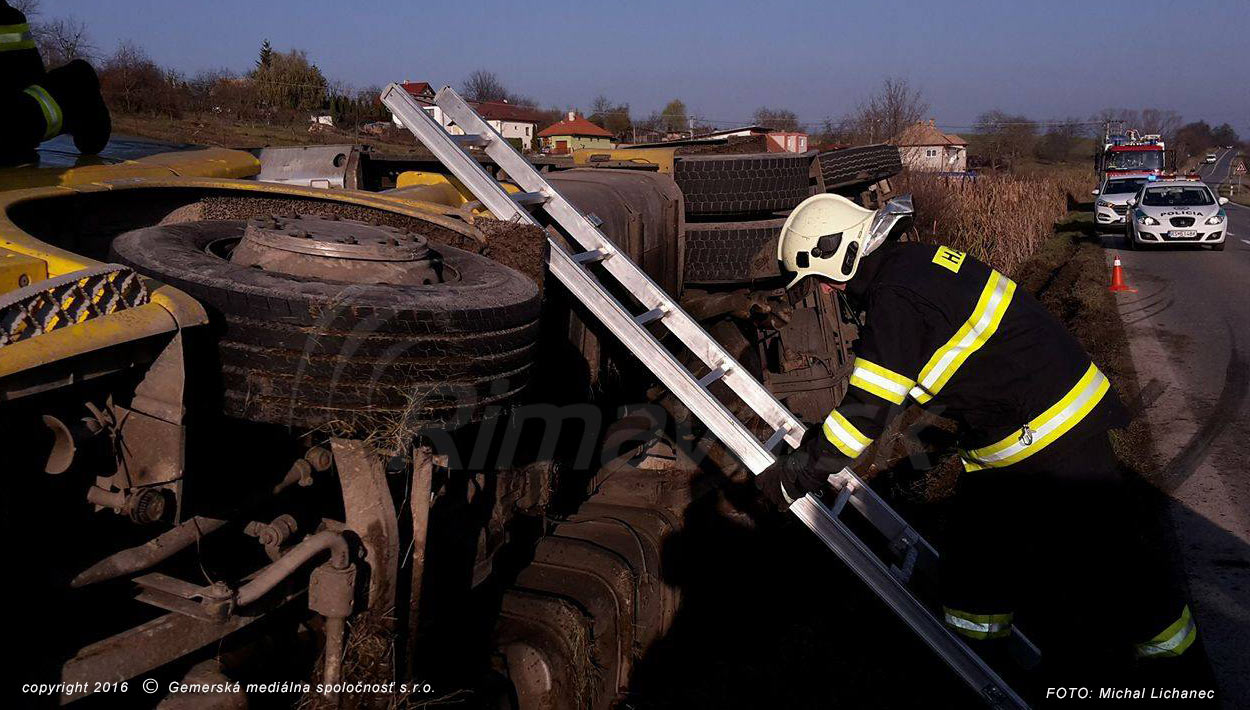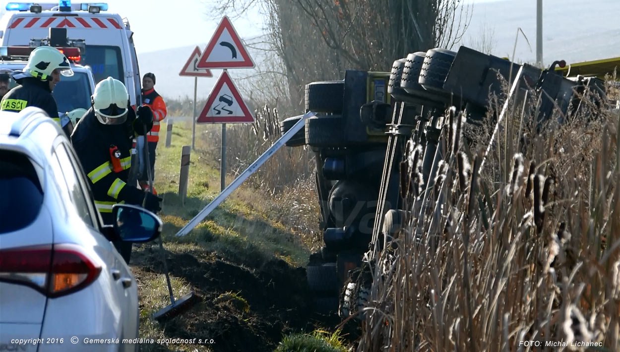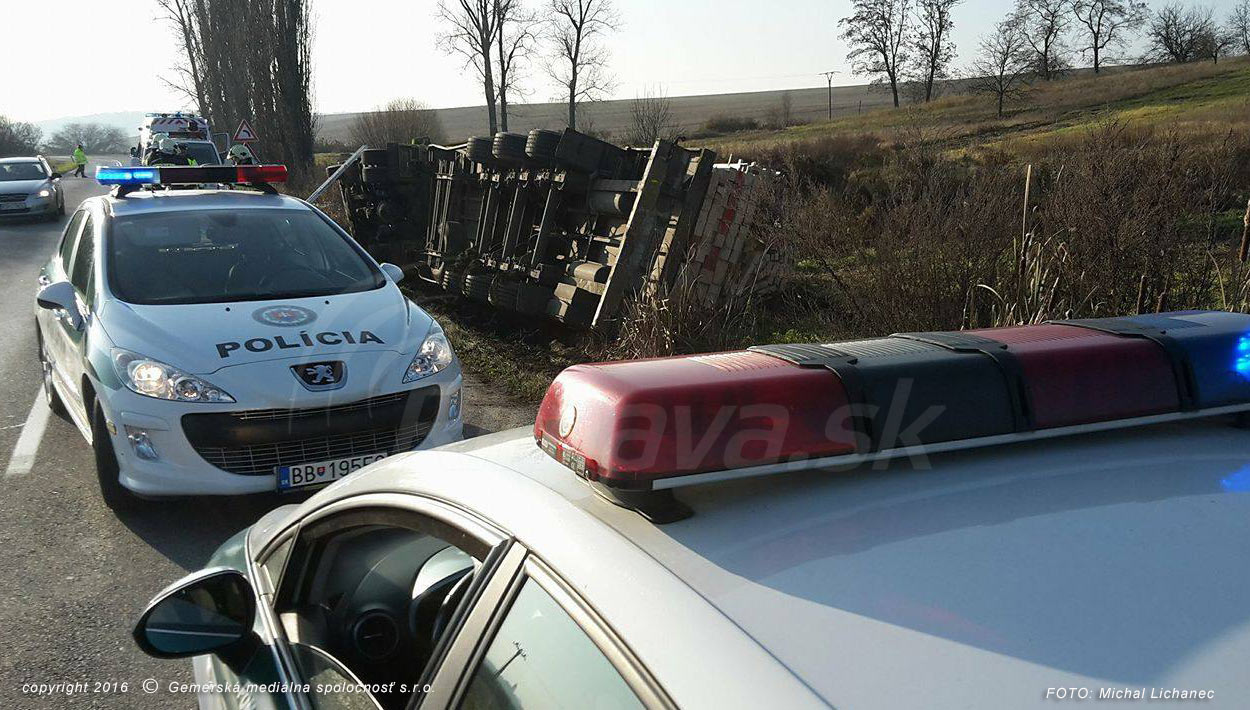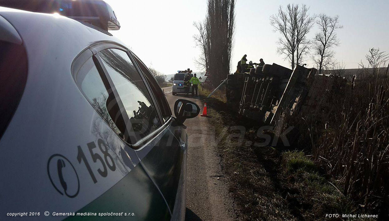 Za Veľkými Teriakovcami sa prevrátil kamión, vodiča previezli do nemocnice