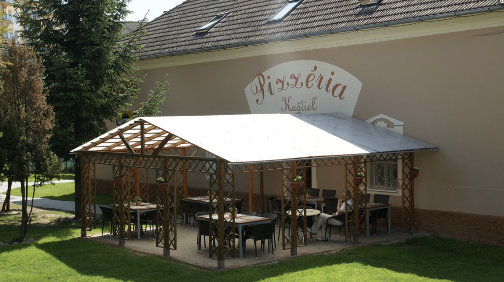 Pizzeria je známa nielen jedlom, ale aj atmosférou – v lete môžete využiť krytú terasu s detskými preliezkami, ideálnu na rodinné oslavy.