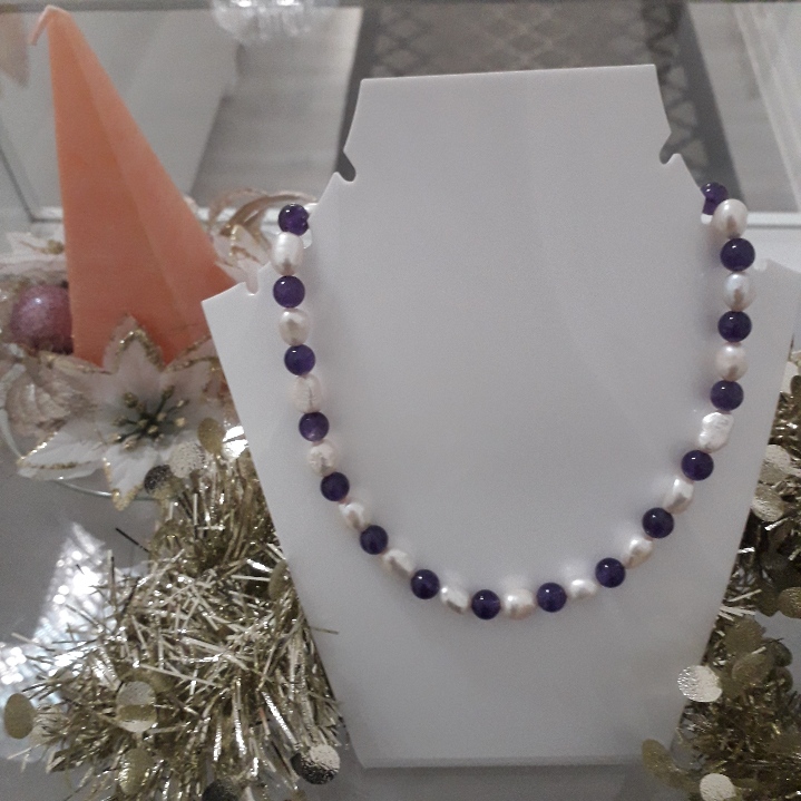 Dnešný darček do adventného okienka: Šperk od Zlatníctva Zafír – Ručne zhotovený náhrdelník z minerálu Amethyst a barokových perál so strieborným zapínaním