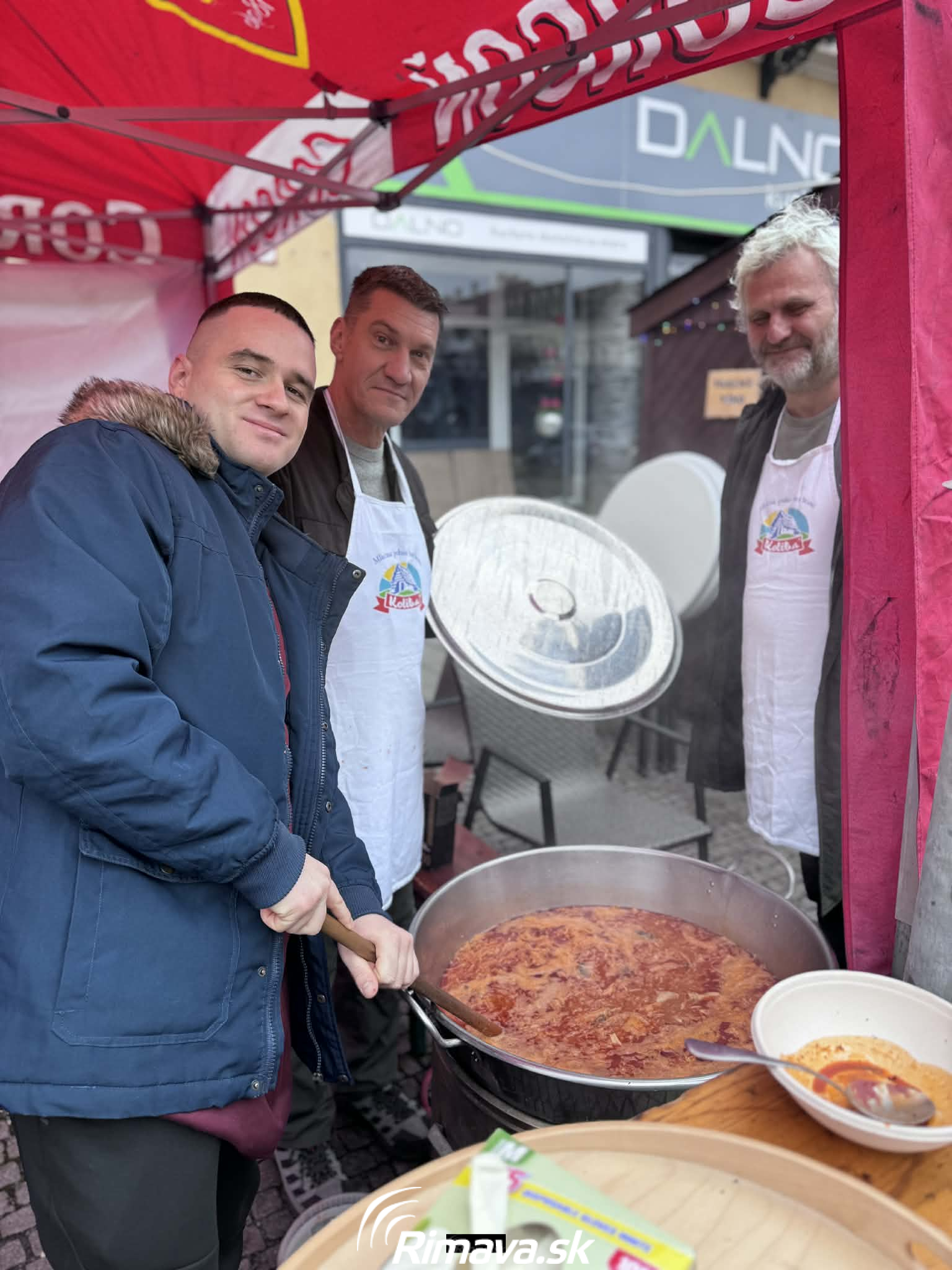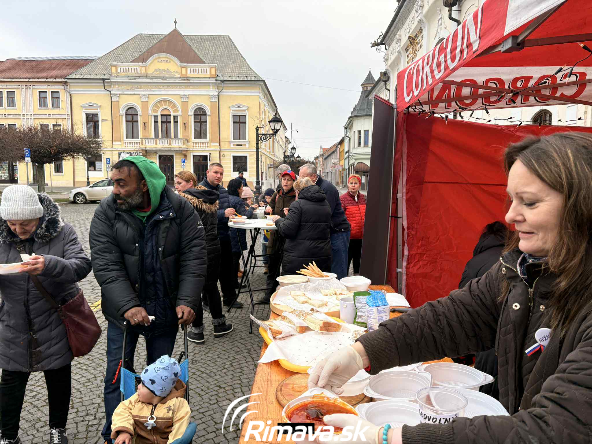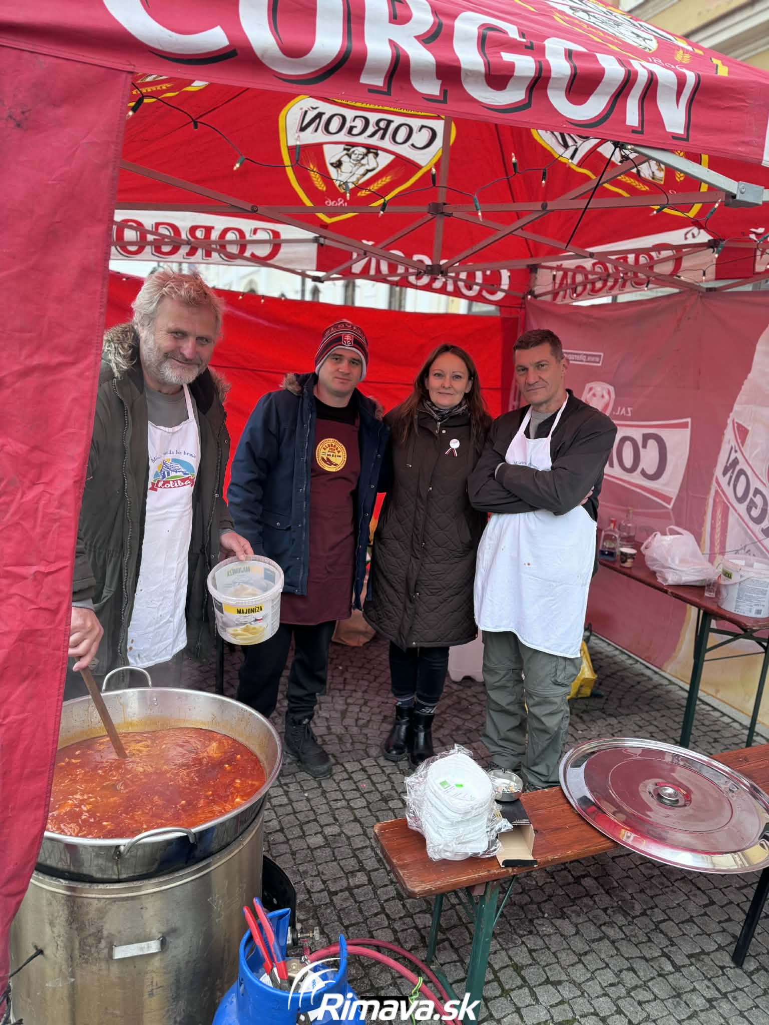 Plán bol jasný – predpokladali sme, že o 13:00 bude hotovo, ale veľkosť kotlíka a kvalita surovín si vyžiadala svoj čas. Prvé polievky sme začali rozdávať okolo 13:30 a do 15:00 bol kotlík prázdny. Rozdali sme viac ako 130 porcií a tým, čo prišli neskôr, sme ponúkli aspoň tradičný chlieb s masťou, cibuľou a soľou – zadarmo, zo srdca.