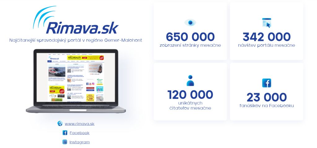 - že všetky weby (rimava.sk, echoviny.sk, novohradske.sk, inzercia.rimava.sk a menu.rimava.sk) mesačne číta viac ako 200-tisíc ľudí a spolu dosahujú vyše 1 milión zobrazení stránok?