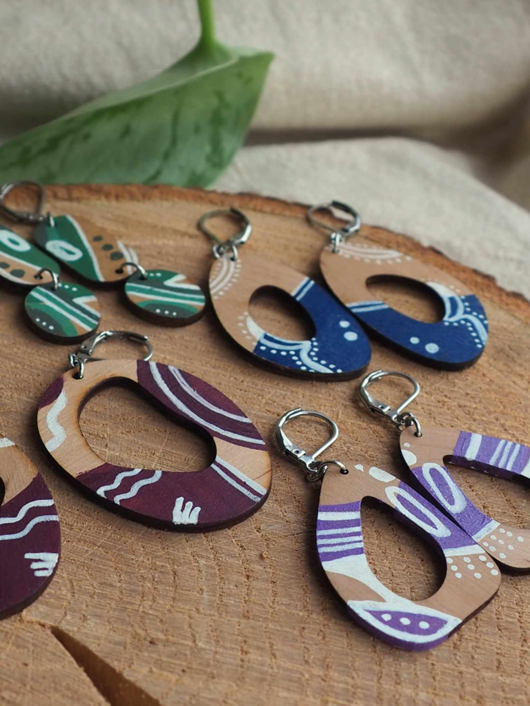 Po čase si vytvorila prvú kombináciu náušníc z bavlny a dreva. "Páčilo sa mi, ako farebné špagáty rozjasnia drievko a tak mi napadlo, že ho skúsim pomaľovať," vysvetlila. Ubehli tri roky a autorka diel aj naďalej takýmto spôsobom maľuje na drievka, aj bez špagátu.