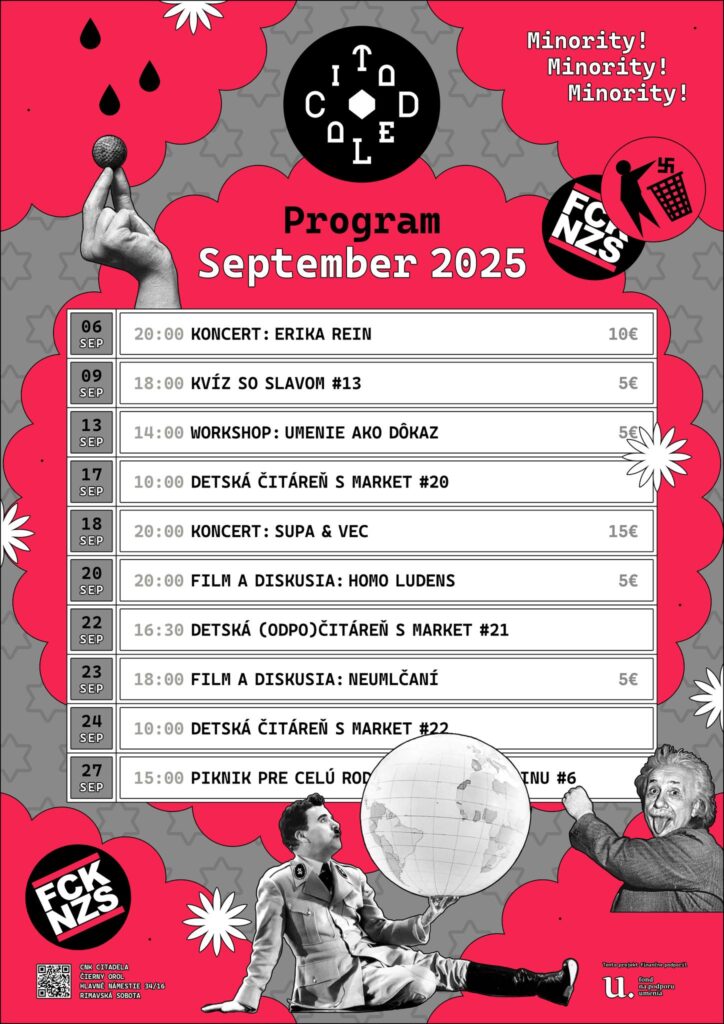 Centrum nezávislej kultúry Citadela v Rimavskej Sobote pripravilo na september pestrý program, v ktorom sa prelínajú spoločenské témy, diskusie, hudba i film. Mesiac sa bude niesť aj v znamení Pamätného dňa obetí holokaustu a rasového násilia, čo sa odrazí v dvoch podujatiach venovaných židovskej a rómskej minorite.